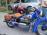 Schon bei der Planung der Tour, hatte ich mich wegen des Streckenverlaufs besonders auf den dritten Tag gefreut. Während die ersten beiden Tage zum größten Teil in der Ebene verliefen, würde uns der heutige Tag in hügelige, ja sogar leicht bergige Gegenden führen. So verließen wir Rust und nährten uns im weiten Bogen Forchtenstein, dem ersten Halt des Tages. Als ich den Parkplatz der Burg erreichte, drehte ich mich wie immer um und sah wie die ersten Fahrer hinter mir auf den Parkplatz fuhren. Ich wollte meine Scout schon fast abstellen, da schoßen drei Indians mit hohem Tempo an der Einfahrt des Parkplatzes vorbei, die uns offensichtlich übersehen hatten. Ich wendete, rollte über den Parkplatz und gab ab der ersten Kurve auf offener Straße Vollgas. Auf einer längeren Geraden wurde mir bewußt, wen ich da eigentlich verfolgte. Manfred Fetscher, einer der sportlichsten Fahrer im Feld auf Sport Scout und Horst Strangmann auf seiner Four. Angeführt wurden die beiden von Joze Romsek auf seiner Chief, der seinerseits so schnell wie möglich fuhr, um die vermeintlich vor ihm fahrende, restliche Gruppe einzuholen! Ich hatte auf meiner Scout alle Hände voll zu tun aufzuholen. Mit hoher Drehzahl, sportlichem Schalten und außergewöhnlichen Kurvenlagen gelang es mir, langsam auf die drei aufzuschließen. Einige Male schliffen die Trittbretter über den Asphalt, letztlich gelang es mir aber auf einer langen Geraden die Gruppe anzuhalten. Noch nie zuvor hatte ich meine Scout so hart, so nah am Limit gefahren. Nach einem kurzen Durchatmen kehrten wir zur Gruppe auf den Parkplatz zurück und setzten nach einer kurzen Besichtigung der Burg unsere Fahrt mit der restlichen Gruppe fort. Der Streckenverlauf wurde jetzt immer abwechslungsreicher. Teilweise nur mehr auf Nebenstraßen die Bauernhof mit Bauernhof verbanden, näherten wir uns langsam dem Schneeberg an. Bei Reichenau an der Rax bogen wir ins Höllental. Dicht an dicht drückten sich hier die Kurven an den Felswänden der engen Schlucht. Schnell waren wir alle im Takt der Kurven, im Rhythmus des Gasgebens, Anbremsens und wieder Gasgebens. Wie im Rausch, mußte ich mich zwingen die Gruppe zur Mittagsrast im Weichtalhaus anzuhalten. Kurzzeitig waren wir hier 13 Indians, da Hans mit seiner 1927er Police Scout zu uns gestoßen war. Nach dem Mittagessen und einigen weiteren Kilometern enger Kurvenfahrten öffnete sich die Landschaft und wir befuhren weitläufige Almwiesen. Wie auf bis jetzt jeder Tour, stellte sich bei mir an diesem Nachmittag des dritten Tages das Gefühl ein, die Tour jetzt nur mehr “nach Hause fahren“ zu müssen. So genoß ich die Strecke kurz vor Wien und war etwas später froh, als wir den dichten Verkehr am Stadtrand hinter uns gelassen hatten. Durch die engen Kehren der Sophienalpe und unter den mächtigen Bäumen des Wienerwaldes fahrend, trafen wir wenig später am Marienhof, dem Endpunkt der Tour, ein. Wir hatten in 3 Tagen etwa 660 Kilometer zurückgelegt.