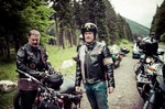 Wir setzten unsere Fahrt am Talboden fort und erreichten den Plöckenpass, den letzten großen Aufstieg dieses Tages. Mit der Kombination von 11 Haarnadelkurven hintereinander, von denen einige ihren Wendepunkt in Tunneln haben, ist dieser Pass schon etwas ganz Besonderes. Noch im Trockenen erreichten wir den Scheitel der Straße, danach setzte allerdings Regen ein. Am Fuß des Passes auf der österreichischen Seite, hielt ich bei einer Tankstelle, nicht nur um aufzutanken, sondern auch weil es mittlerweile recht stark regnete. Nach und nach trafen die einzelnen Fahrer ein, nur auf zwei warteten wir vorerst vergeblich. Bei ihrer Ankunft erfuhren wir, daß die beiden auf der nassen Straße weggerutscht waren. Wir waren sehr erleichtert zu hören, daß bis auf einen kleinen Schaden an einer der Indians nichts passiert war und sich niemand verletzt hatte. Als wir nach 244 Kilometern die Fahrt an diesem Tag beendeten, waren alle froh wieder zurück im Hotel zu sein.